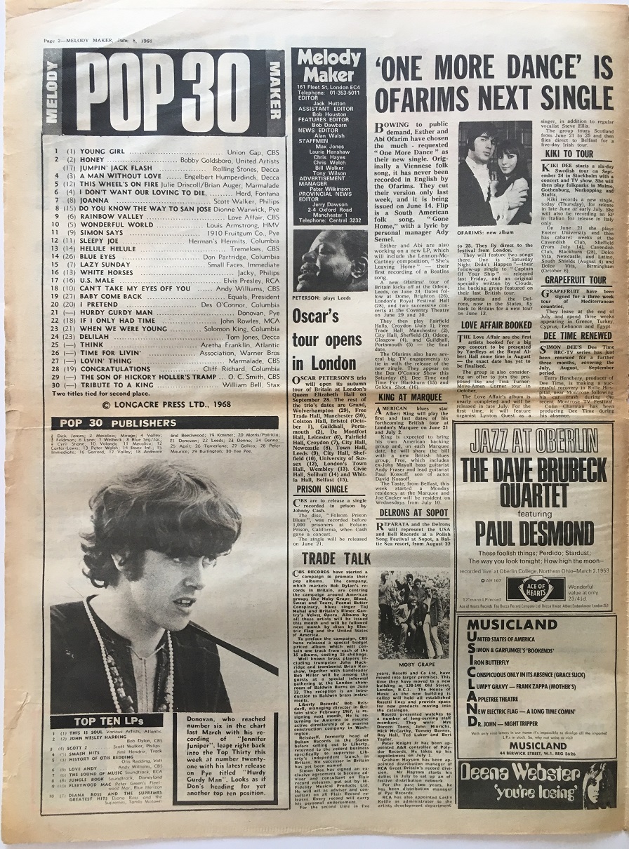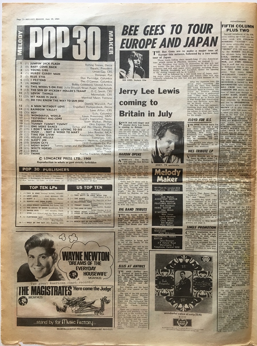 MELODY MAKER June 8 1968 /TOP Ten LPs : SMASH HITS N°4/
