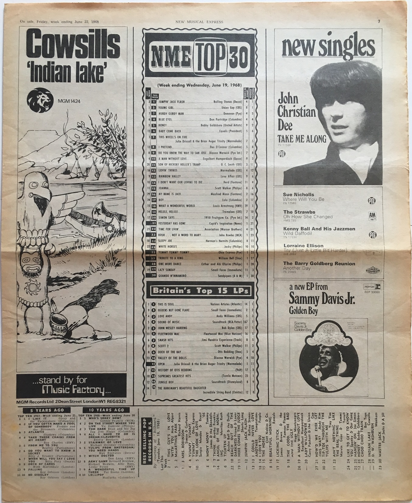 NEW MUSICAL EXPRESS June 8 1968 / TOP 15 LPs : SMASH HITS N°8 /Article