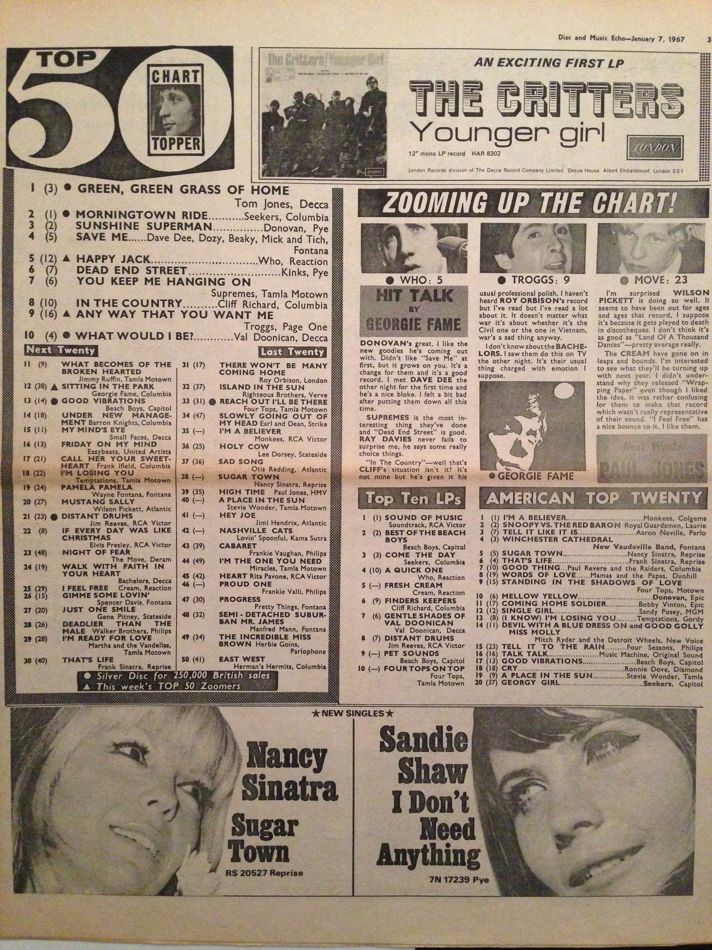 DISC MUSIC ECHO January 7, 1967 1st Top 50 on Disc and music echo (41)/ Article