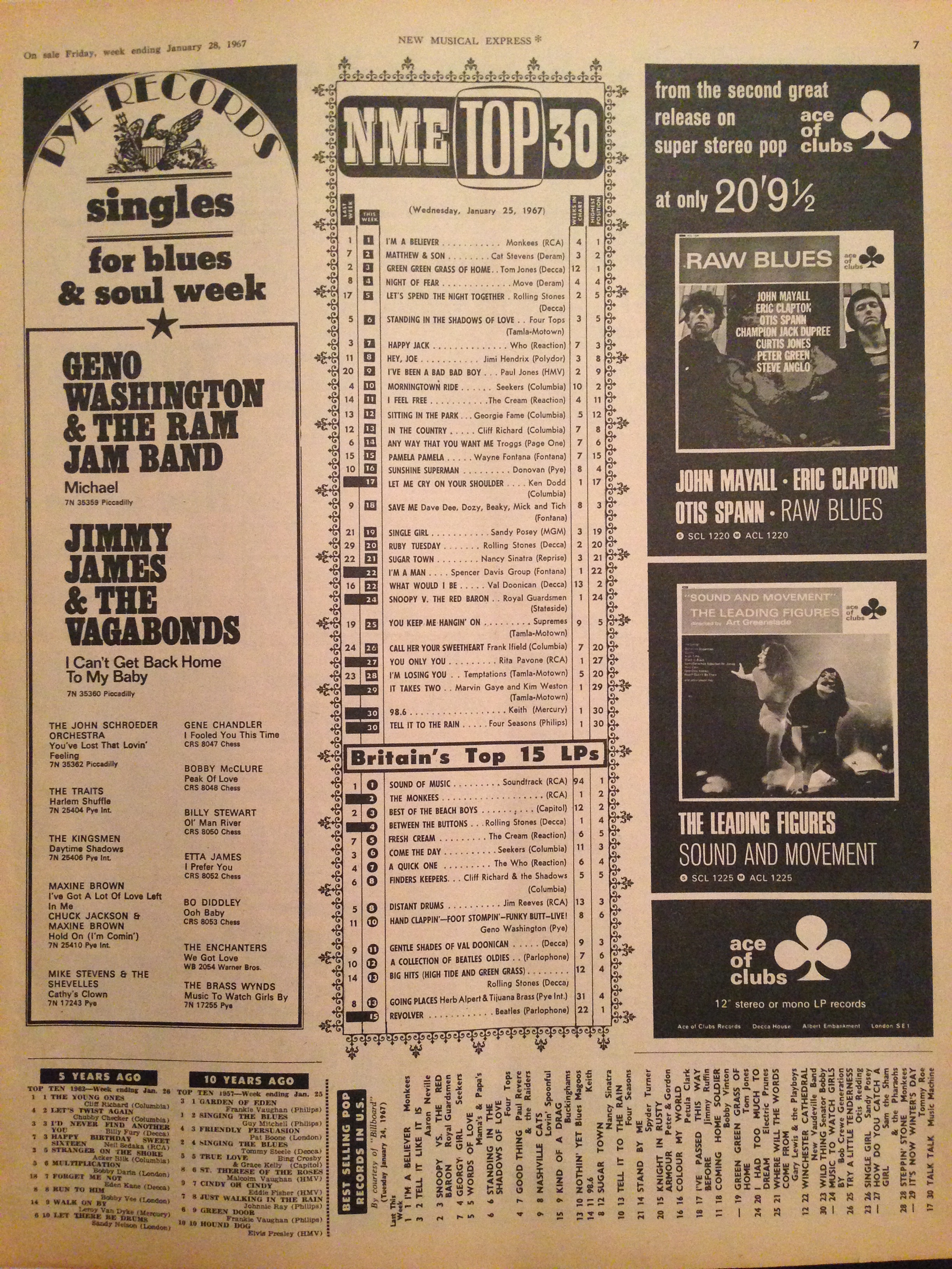 NEW MUSICAL EXPRESS      January 28,1967 TOP 30 "Hey joe N°8" and Articles