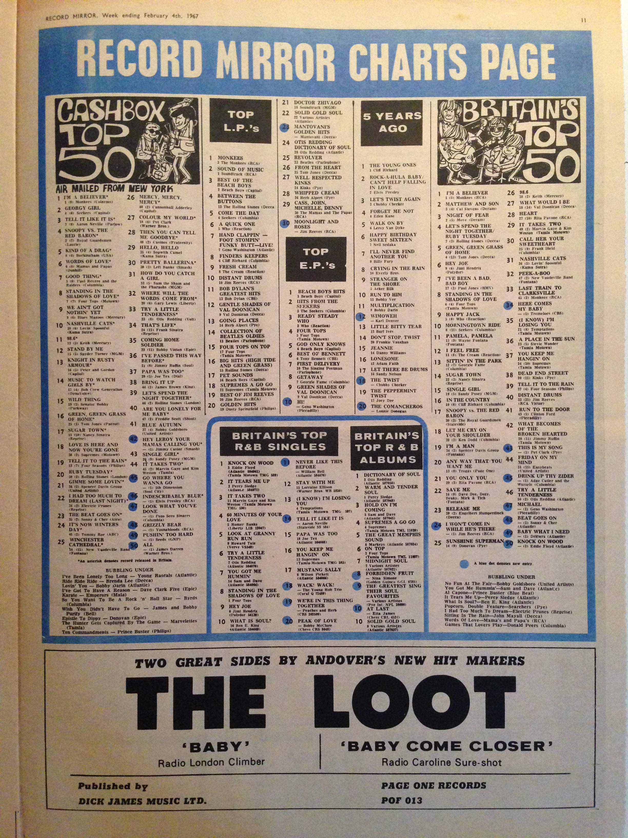 RECORD MIRROR January 7, 1967 2nd week in charts (41)/ Article