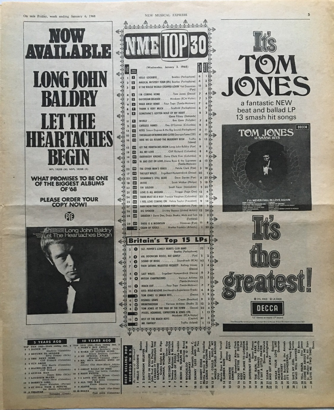 NEW MUSICAL EXPRESS February 3 1968 / Top 15 LPs Axis Bold As Love N°13/ Articles